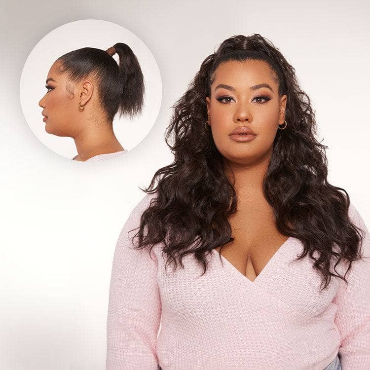 Meet Chloe, the half up half down look of your dreams! Chloe is a 4 piece clip-in set that includes 1 mini ponytail and 3 wefts with loose spiral waves. Whether you want to use all 4 pieces for a voluminous half up half down look or just a few to spice things up, the possibilities are endless with Chloe.