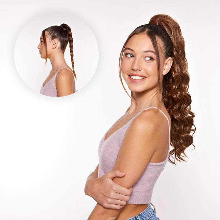 These pre-styled, weatherproof ponytails are the easiest way to switch up your hair color, style, length, or texture without the commitment or harmful chemical & heat damage.
